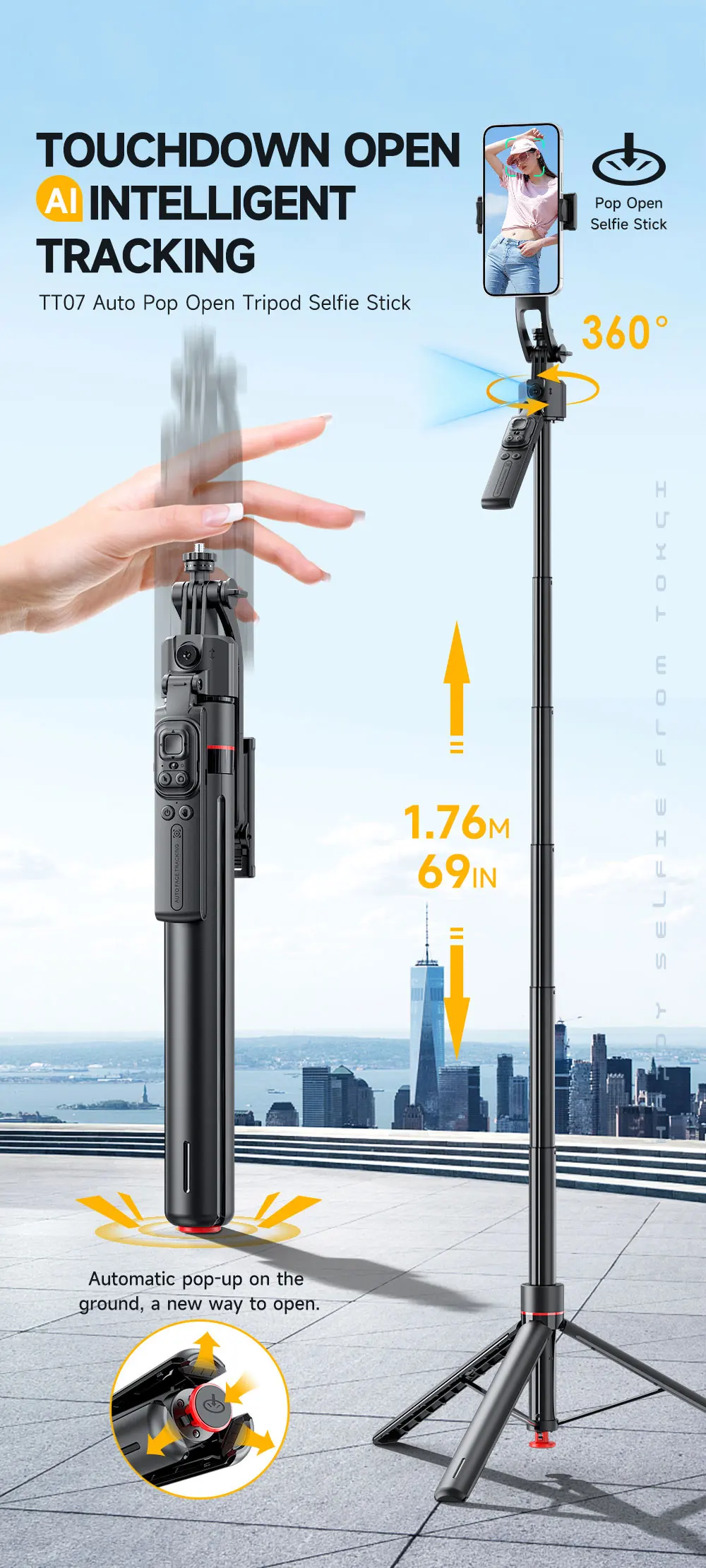 Auto Pop Open Tripod Jumping AI Tracking Selfie Stick