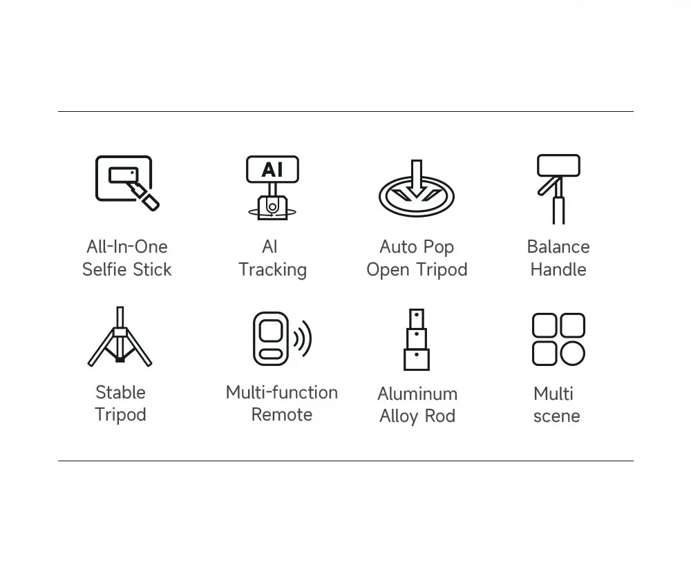 Auto Pop Open Tripod AI Tracking Selfie Stick