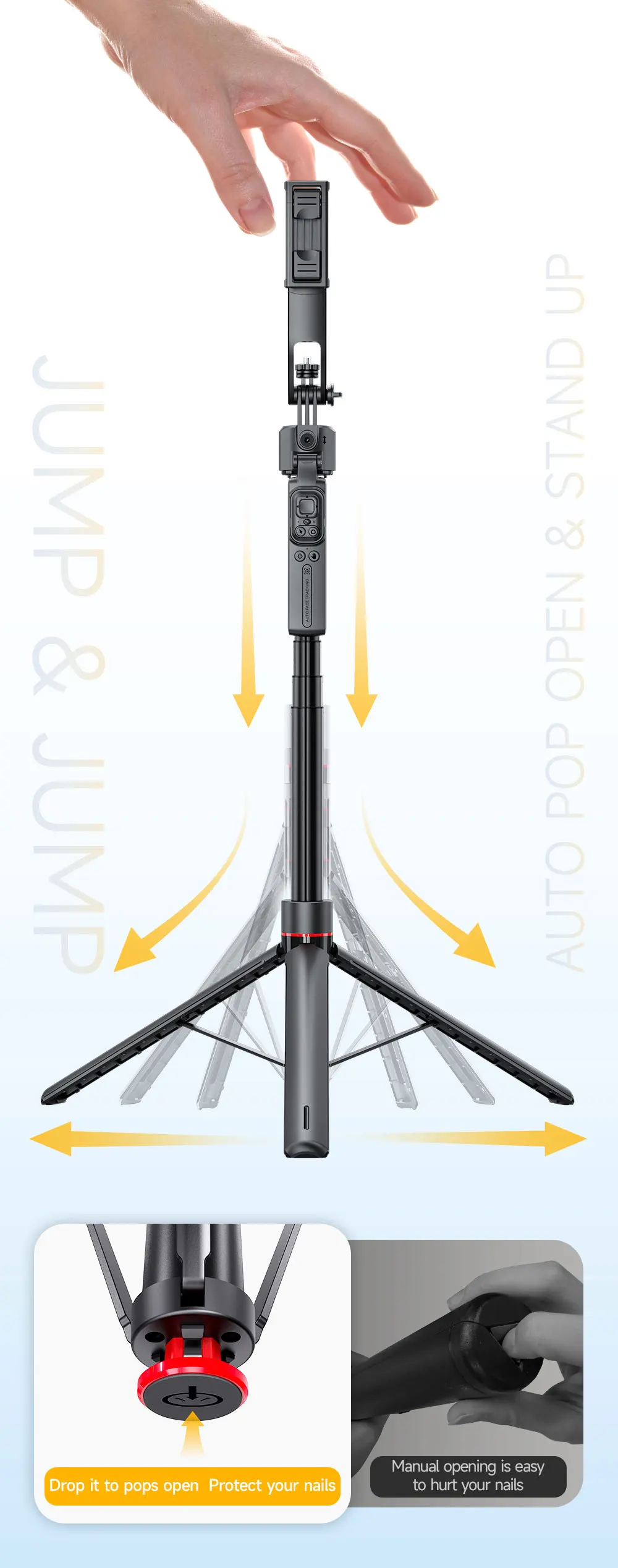 1.Jumping pole, landing automatic pop-up tripod, protect your nails.