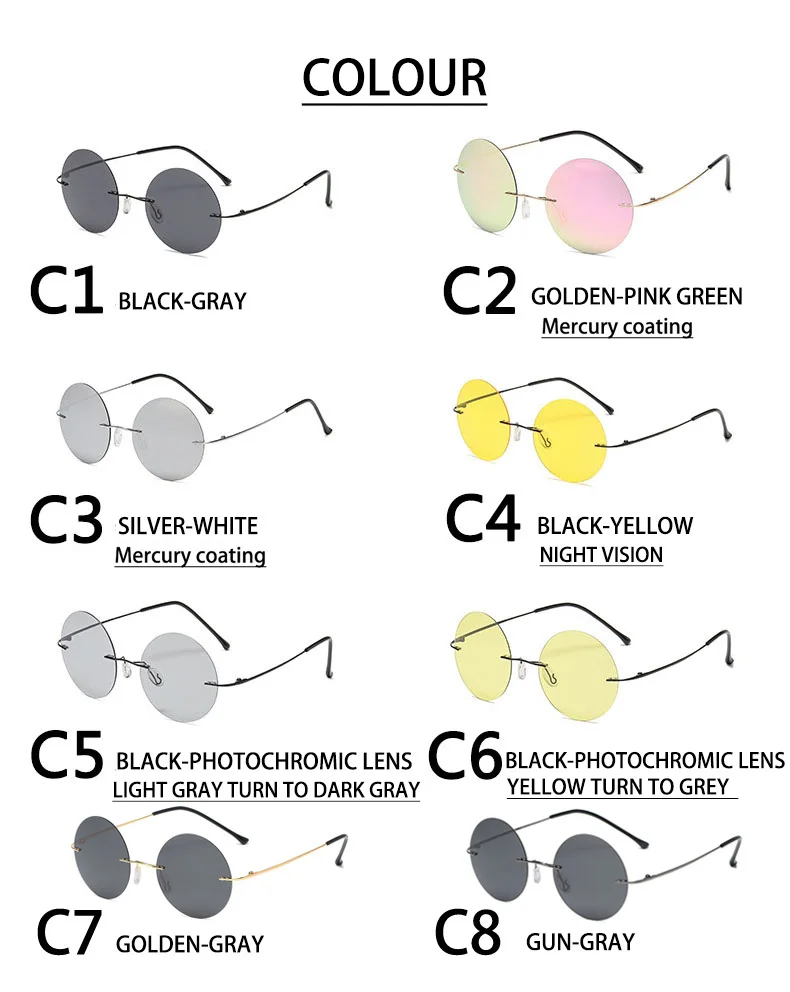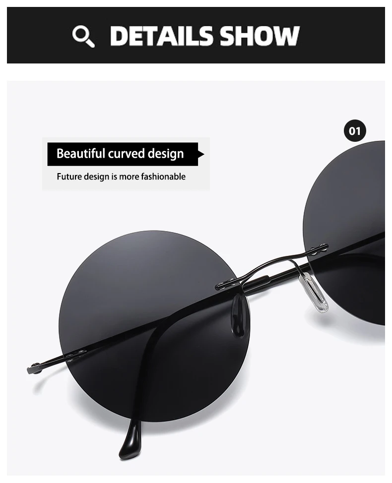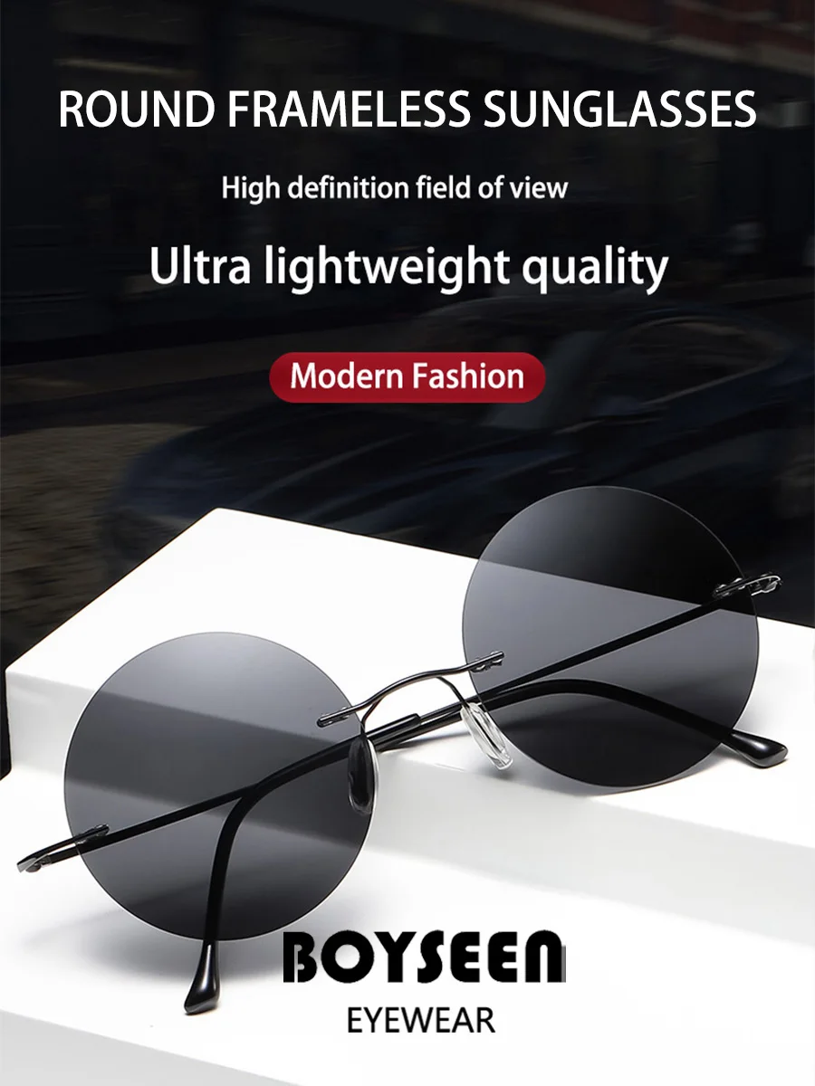 BOYSEEN Ultra light polarized circular frameless sunglasses for men women circular driving sunglasses modern and fashionable