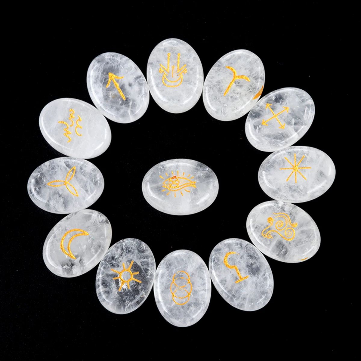 Natural Witch Rune Crystal Onyx Semi-Precious Carved Rune of Nirvana Set Decor Small Furnishings Jewellery Craft Accessories