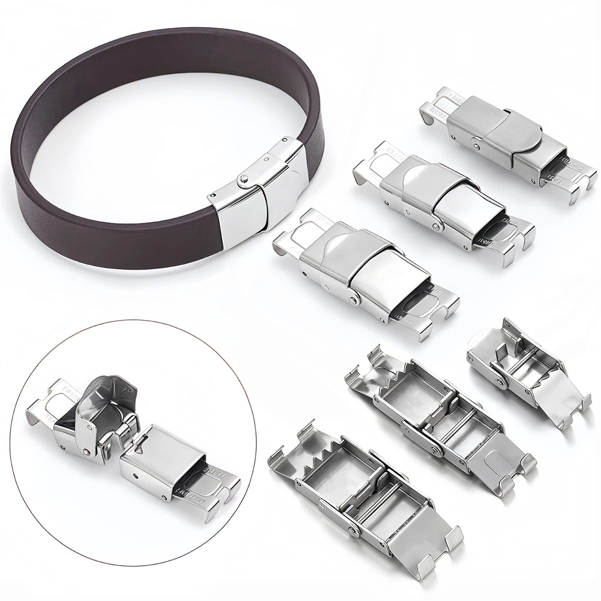 3pcs Stainless Steel Bracelet Clasp Crimp Jaw Hook Watch Band Connect Buckle for DIY Leather Silicone Bracelet Jewelry Making