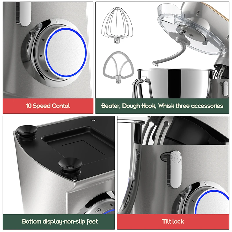 Dough Mixer 6.5L 7L 8L Stainless Steel Bowl Stand Food Mixer Machine Electric Robot Cuisine