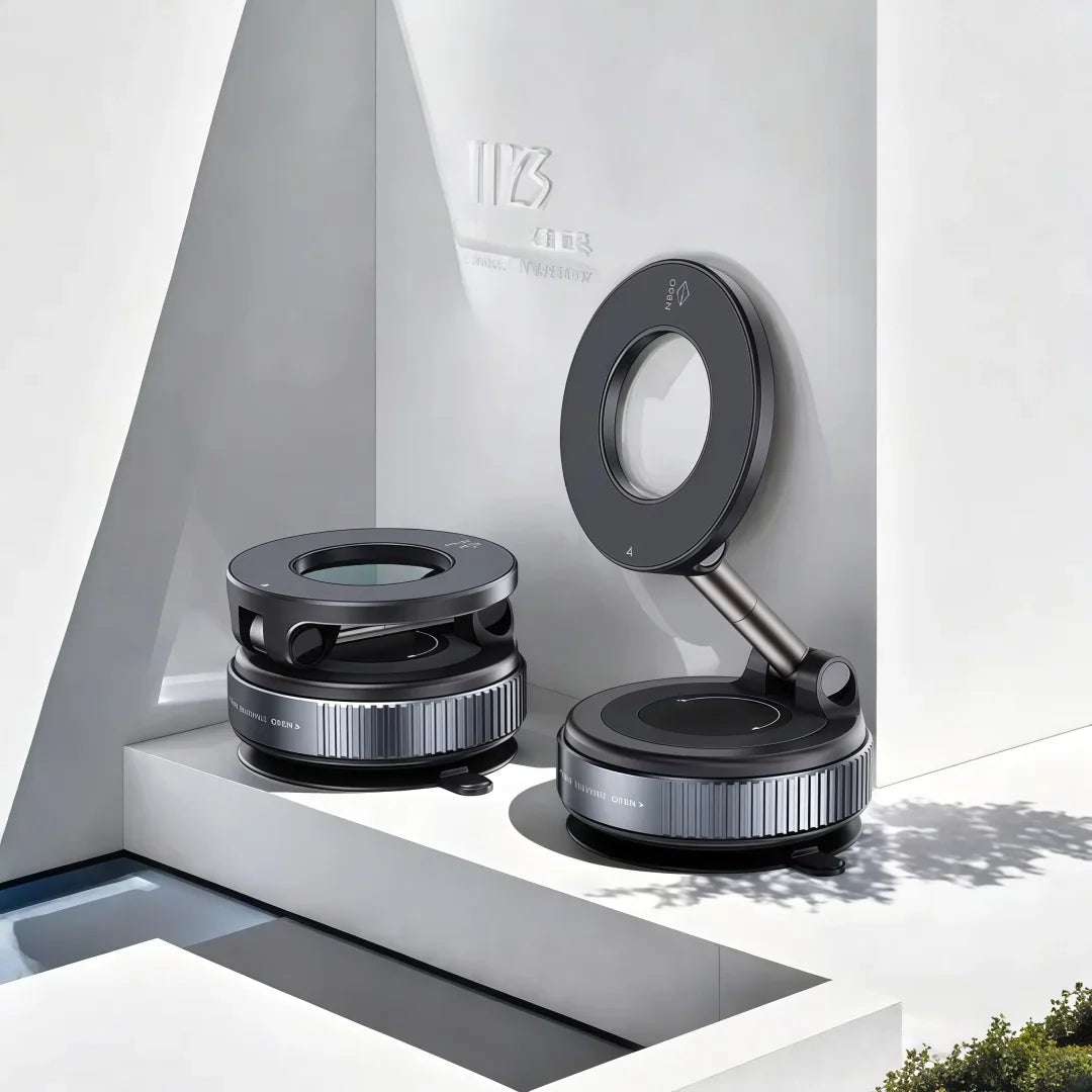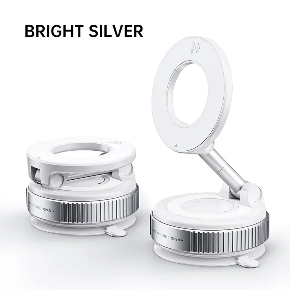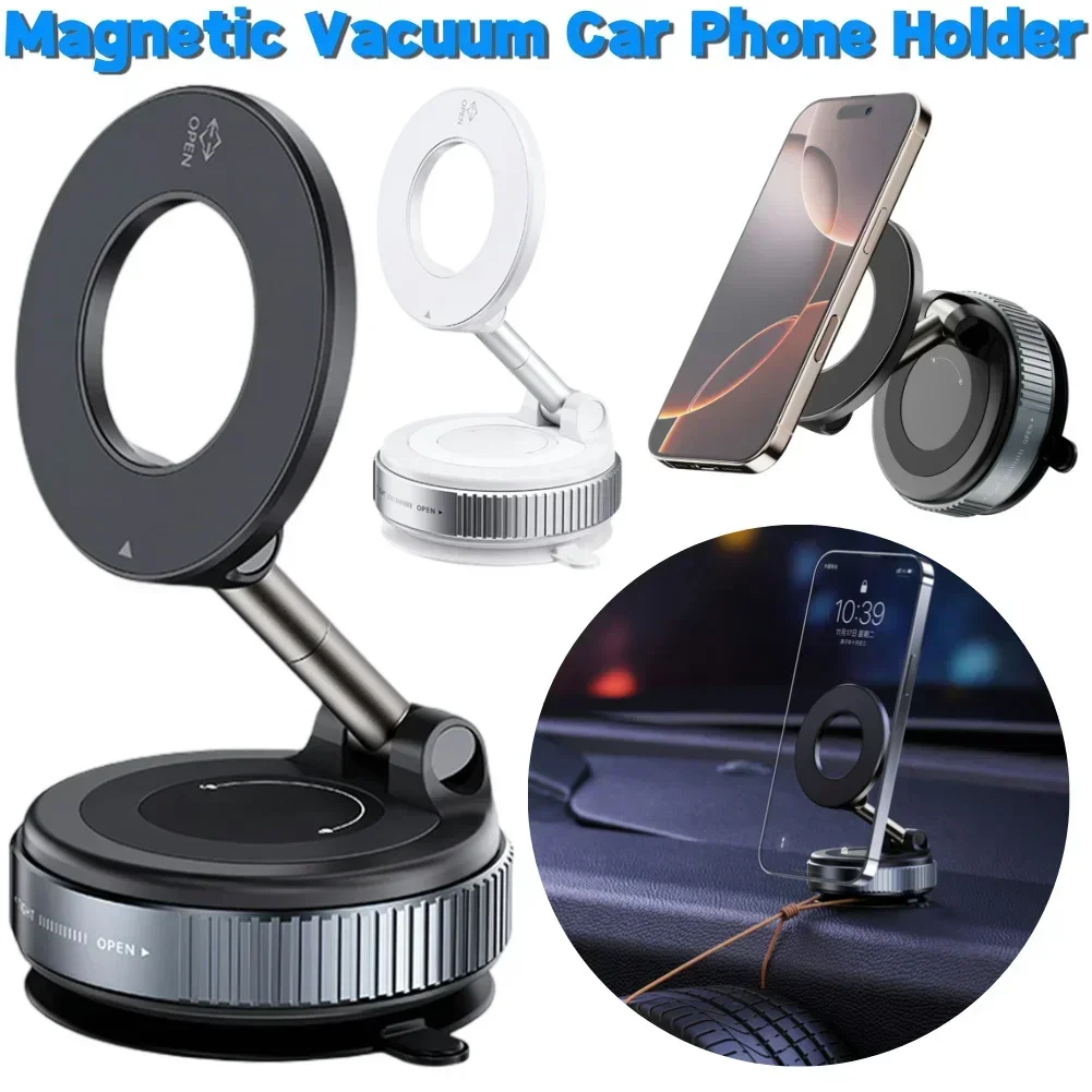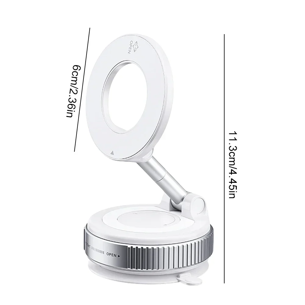 Features: 1.Rotary Locking: Simply place the magnetic vacuum car mount phone holder on your desired surface, press down, and twist clockwise to lock. No complicated installation required, enhancing your overall user experience instantly! 2.Multi-Angle Adjustable: The upgraded magnetic vacuum adsorption car phone mount offers 360-degree seamless adjustment. Its rotating zinc alloy support rod caters to various angles needed for everyday driving navigation. 3.Super Strong Suction: This folding mobile phone stand elevates suction power to a new level with an incredible 7kg max suction force, providing unmatched stability, enduring sudden stops, speed bumps, and rough terrains. 4.Universal Compatibility: Our 360-degree foldable car navigation holder is compatible with various phone models including non-magnetic ones using metal rings, provided to maximize adhesion. 5.Versatile Application: Besides being an excellent magnetic vacuum suction cup car phone stand, this holder performs well on smooth walls and mirrors, offering unparalleled convenience in diverse settings. Specification: Origin: Mainland China Material: ABS+Zinc Alloy Color: White/Black Optional Size: 60*40mm/2.34*1.56in, Stretch Height: 113mm/4.41in Applicable: Smartphones above 4.7 inches (Note: Mobile phones without magnetic suction function need to be used with magnetic sheets) Note: 1*Magnetic Vacuum Car Mount Phone Holder